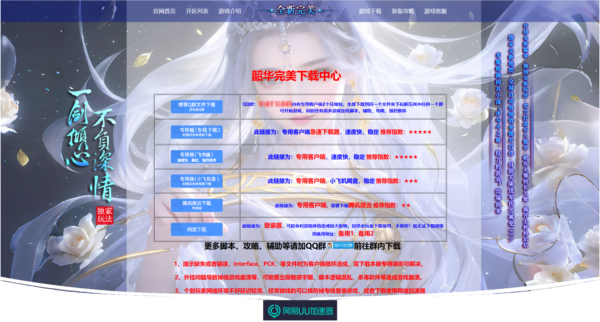 1、欢迎来到韶华完美:(全新特色版本所有装备在游戏内均可以免费获得)本服为6职业版本,创建除老六职业外的其他职业将无法进入游戏,并且会导致账号锁定3分钟,3分钟后自动解锁。