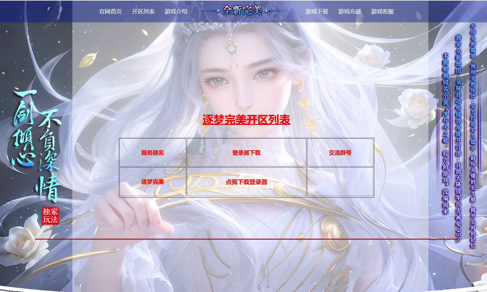 1、欢迎来到逐梦完美:(本服为155端,8职业轻变,增加刺客、刺客取消深度。增加巫师、巫师取消封印限制6开,无精灵、无战灵,职业完全平衡,版本稳定,长久耐玩!