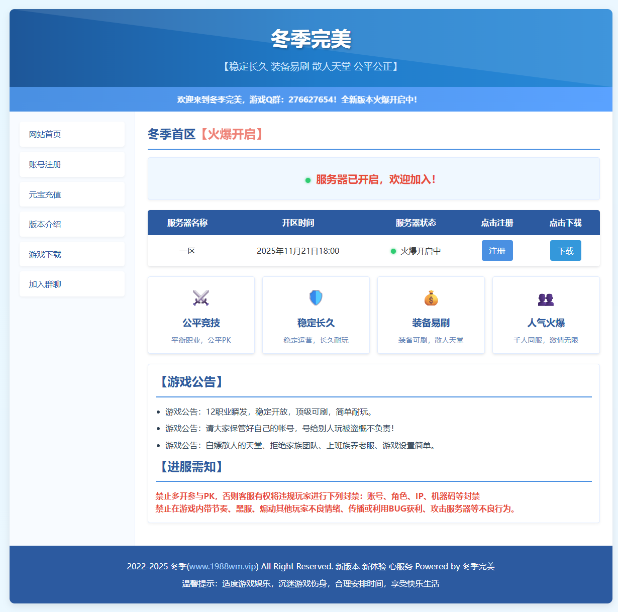 版本特色:12职业瞬发、全新战宠系统、优化技能特效、增加新坐骑与翅膀、 完善经济系统等。