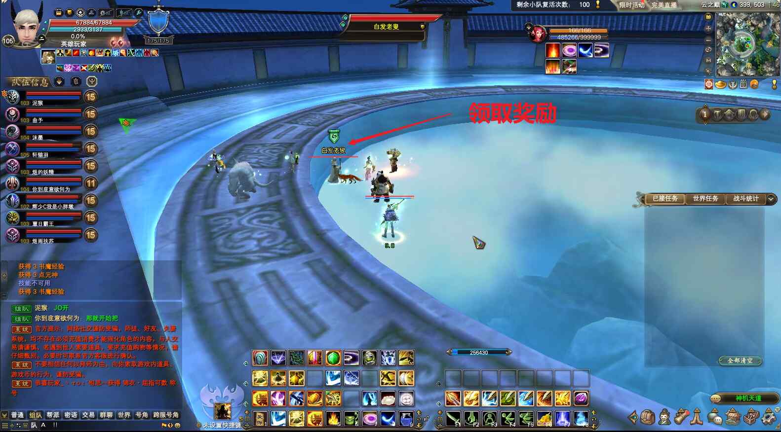第三个boss打完后,场上会出现NPC“白发老叟”,可以直接找其领取奖励,也可以到副本入口处,找NPC枕流君领取。领取奖励时,会消耗“兵戈”令牌。