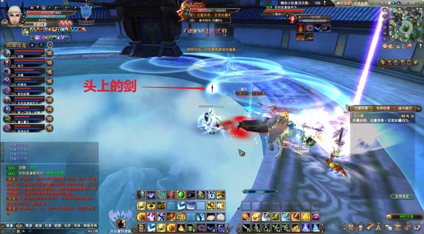 2)头上有剑。如果某个玩家的头上出现剑,需要这个人远离人群比较好,方便其他人继续攻击,如果不离开,会立马出白圈。