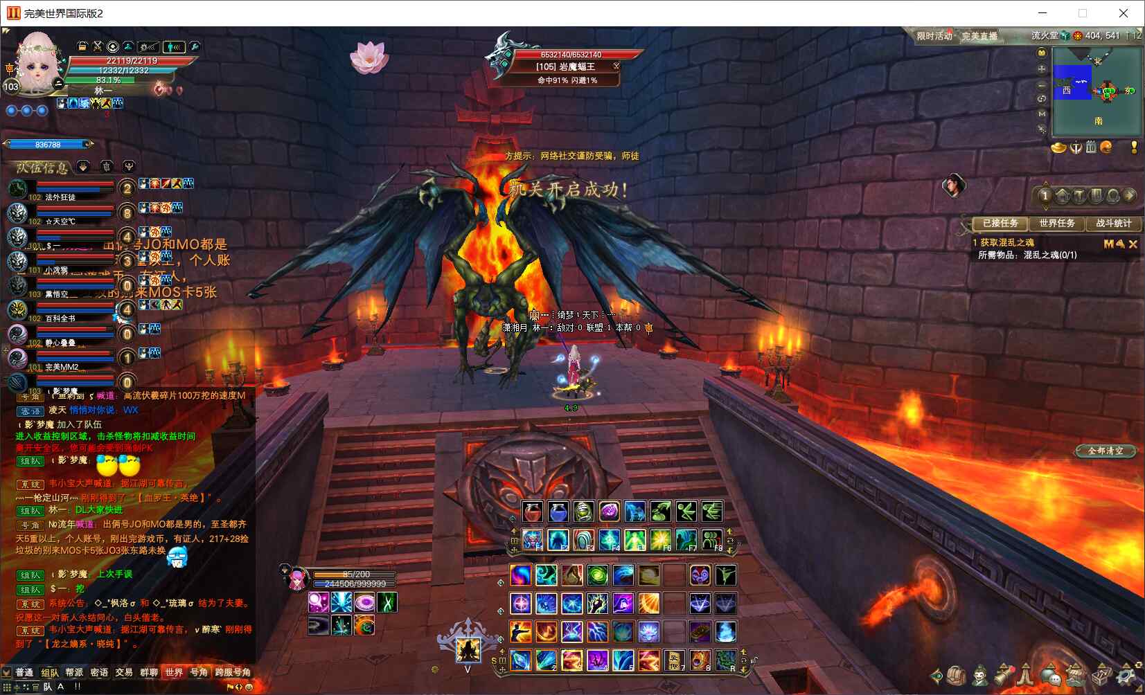 集合状态后,尽量还是由妖兽去吸引仇恨,但是并不强求,其他重甲或者装备好的玩家也可以吸引仇恨。羽灵使用五气朝元继续群加,流银宫除了最后一关外几乎没有开蓝阵的区域。