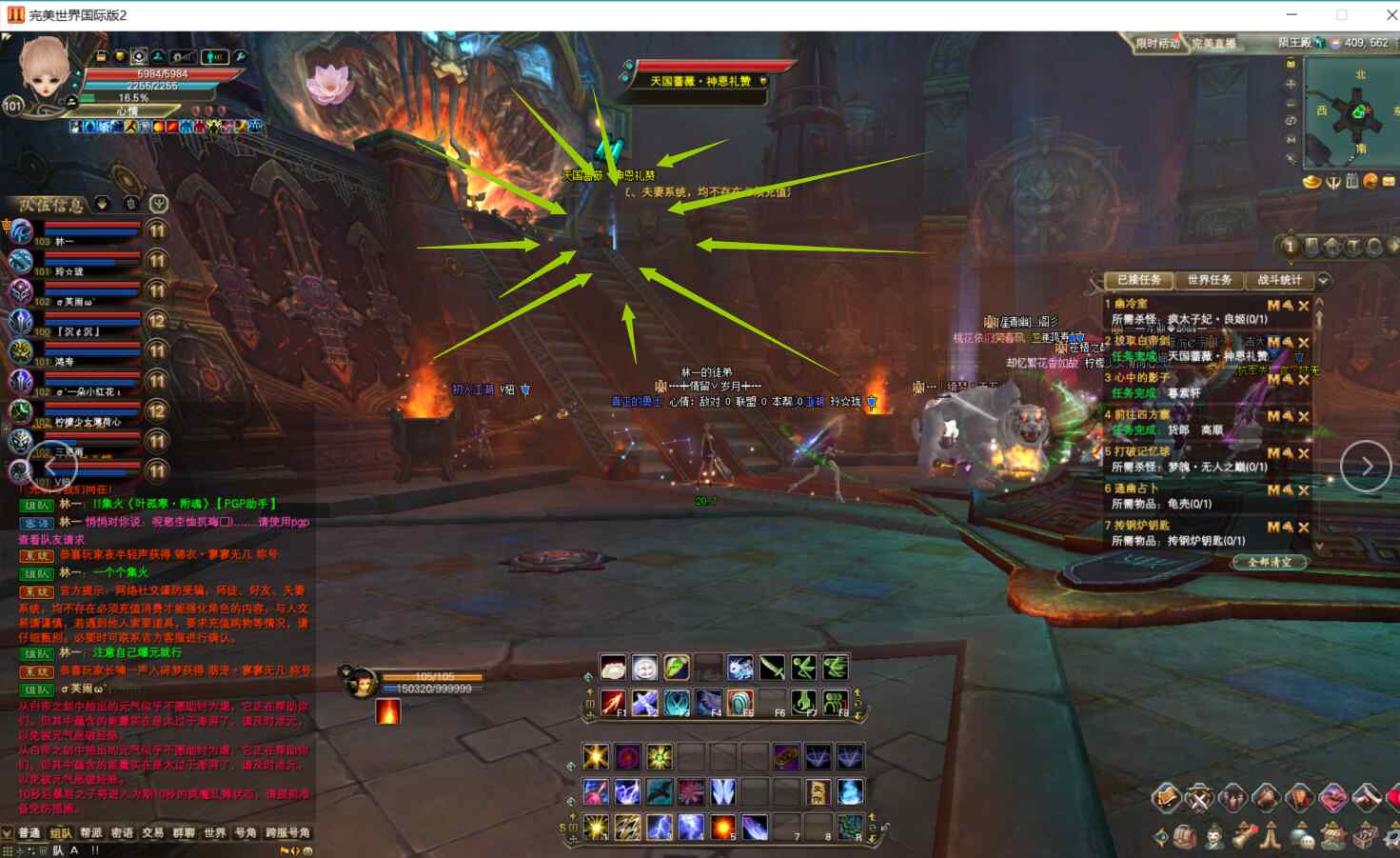 击败五王后,暴君之子·穆释桓终于出现,法系打手站左手边蓝色箭头所示处,妖兽吸引仇恨与其他物理职业站在右手边绿色箭头处(老传统了哈)。其机制为: