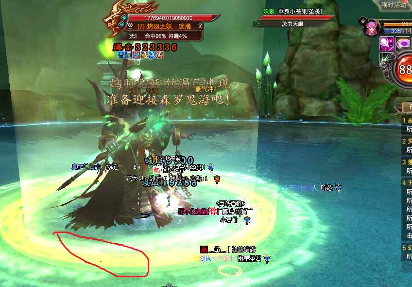 注意事项,BB出来后,谁第一个打它,它就给第一仇恨释放一个小紫色圈,如图片我绿色标记所示。紫圈持续高伤害,需要跑出来,