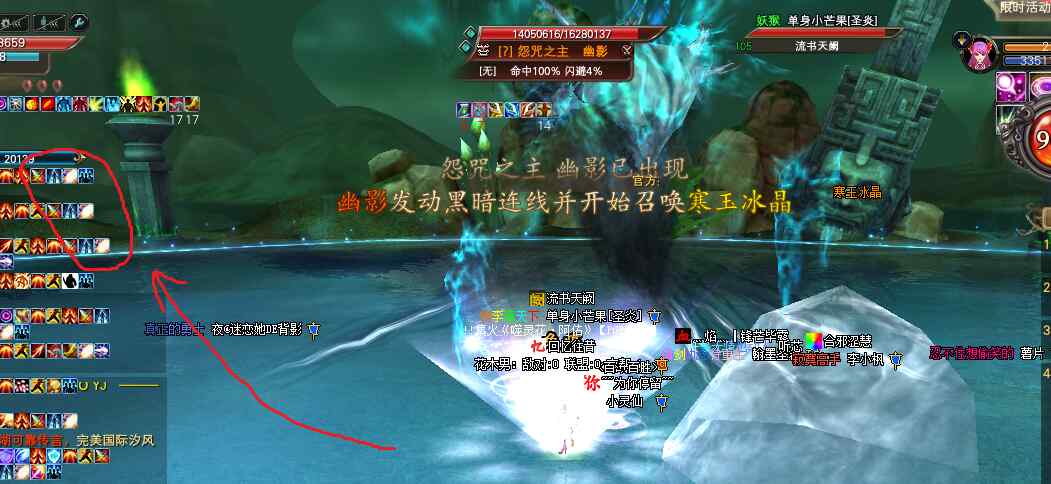 怪出第一个圈后,JO破斧,WX龙,(上关卡了双龙)YJ 残体,CK 分水,其他人爆元秒掉它。