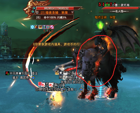 注意,这个怪,有夜影状态,所以8米外攻击几乎没有伤害,如图我红圈标示的深绿色圈圈。