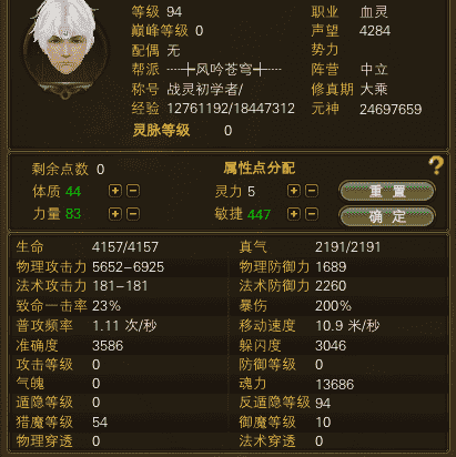 升级过程中,人物属性加点问题,力量加够穿装备,其他全部加敏捷。 如下图所示
