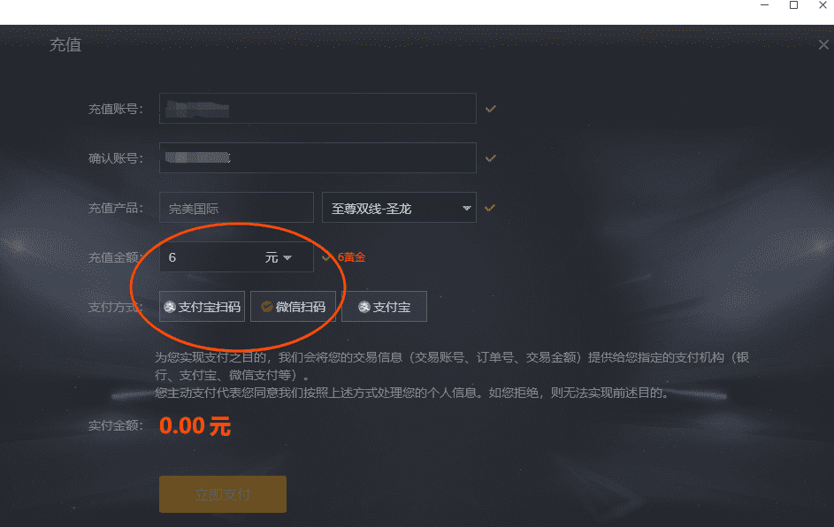 点进去后,在充值金额那里输入6,然后点击微信扫码或者支付宝扫码完成充值就可以了。