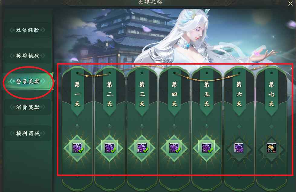 每天也可以在登录奖励那里领取一共7天的登录奖励。记住只要有小红点的都可以点进去领取。