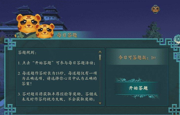 如果没有太多时间玩,一天不能把等级升到100,每天要记得答题,答题也奖励经验,如下图所示,
