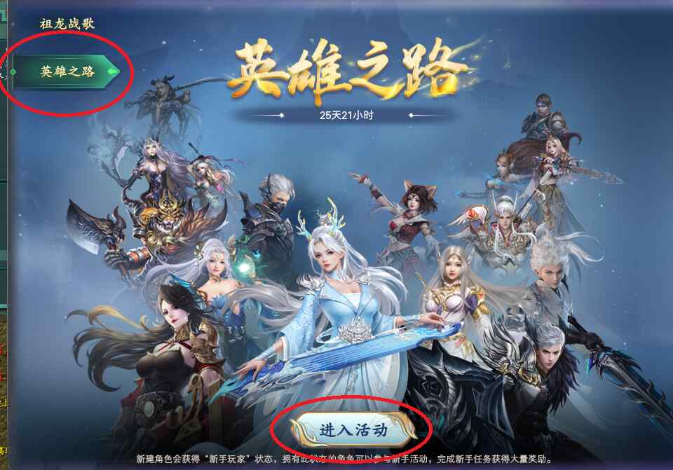 进去后,点击英雄之路,接着点进入活动,如下图红圈标记所示。