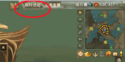 充值完成,退出充值界面,点击游戏界面右上角的限时活动按钮,如下图红圈标记所示,