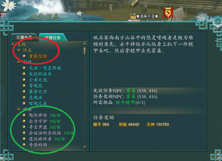 做可接任务列表里面最上面的几个红色任务。如下图绿圈标记类似,