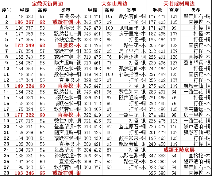一、东陆永安城探索266宝箱详细坐标按区域如下: