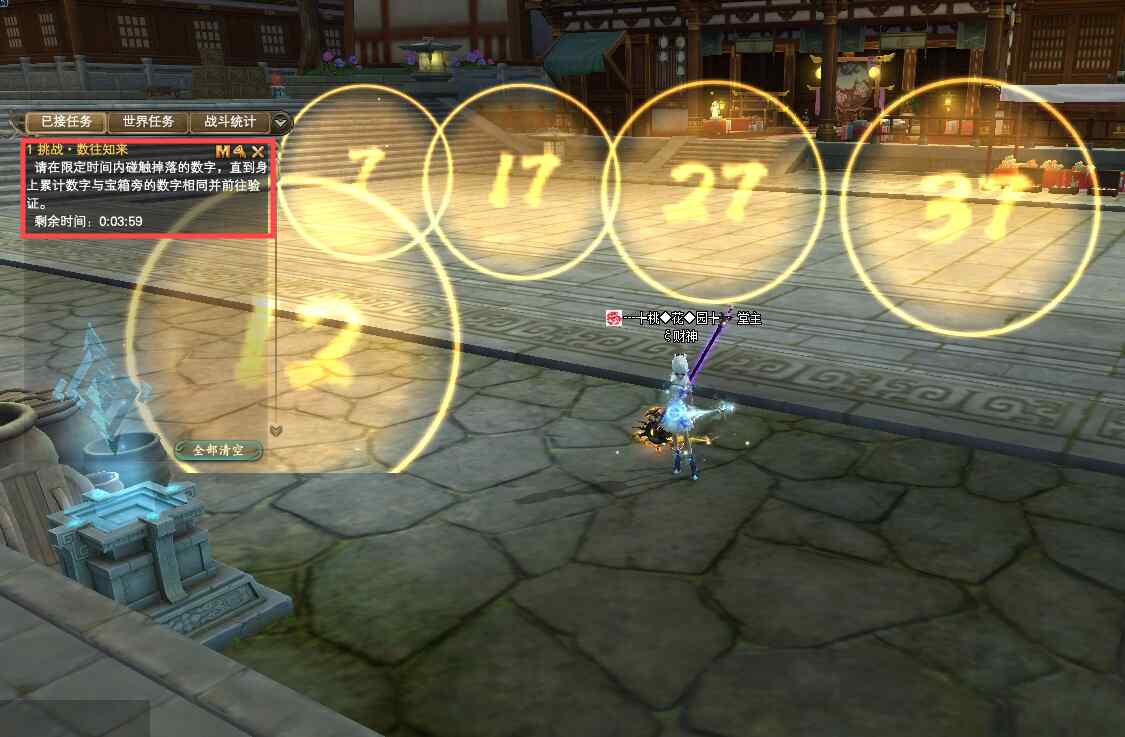 4.挑战.数往知来:限时触碰掉下的数字,让身上累计数字与宝箱旁数字相同靠近验证,验证成功后挖宝箱。