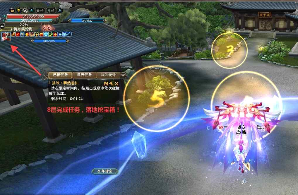 8.挑战.飘然若仙:限时空中按顺序碰撞8个光球,若挑战成功,落地直接挖宝箱,建议飞机加速、自备完美石给飞机加油。