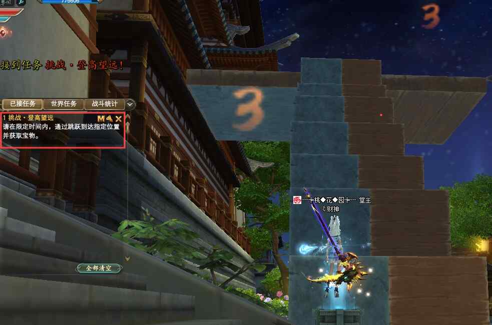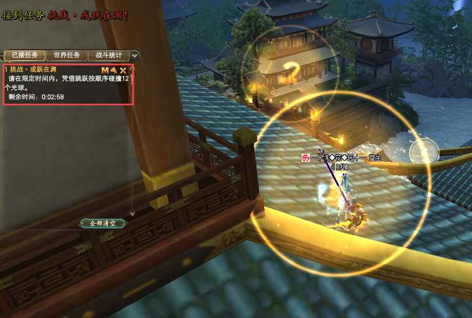 7.挑战.或跃在渊:限时跳跃按顺序碰撞要求数量光球,若挑战成功,直接挖宝箱。