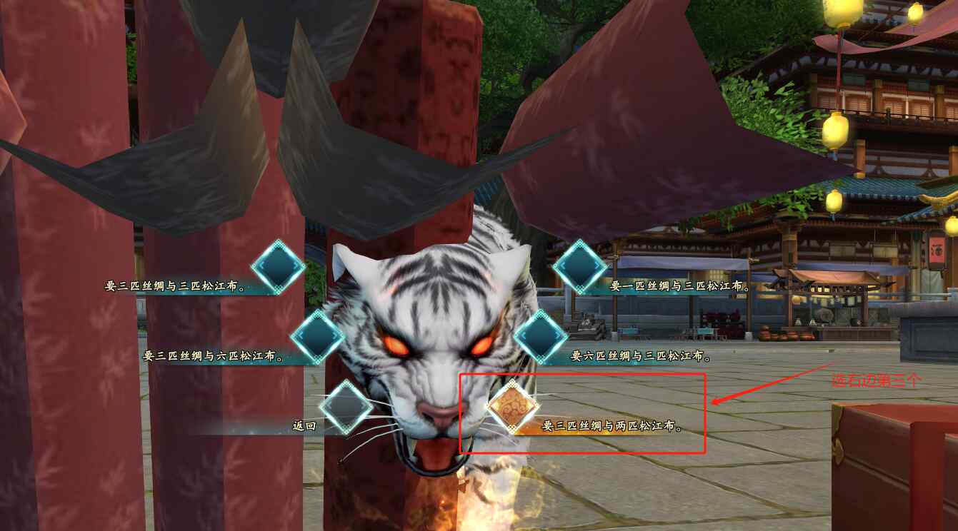 数月后,再次收到冉遗的信件,带三匹丝绸和两匹松江布,前往布坊老板 余晴(160.342)处对话,购买布料!买好后,前往居民区冉遗的家。