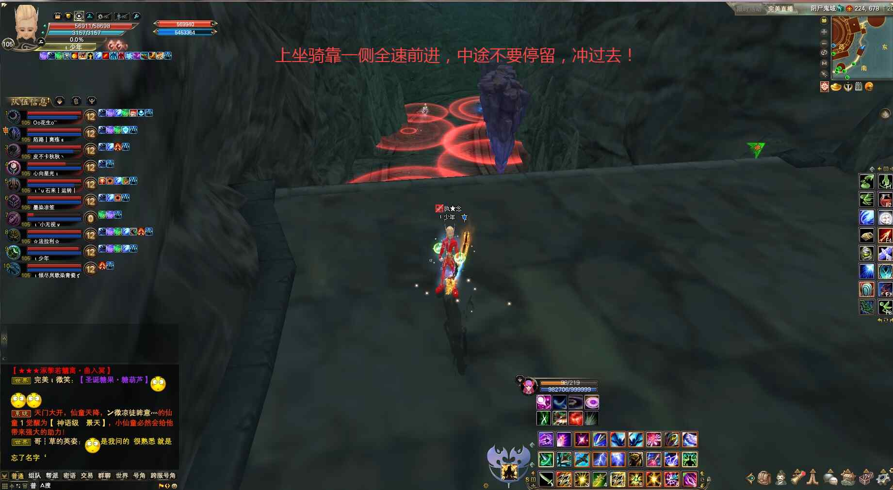 玩家上坐骑后,趁红圈扩散间隙快速通过,建议12米坐骑,挂掉直接回城再跑。