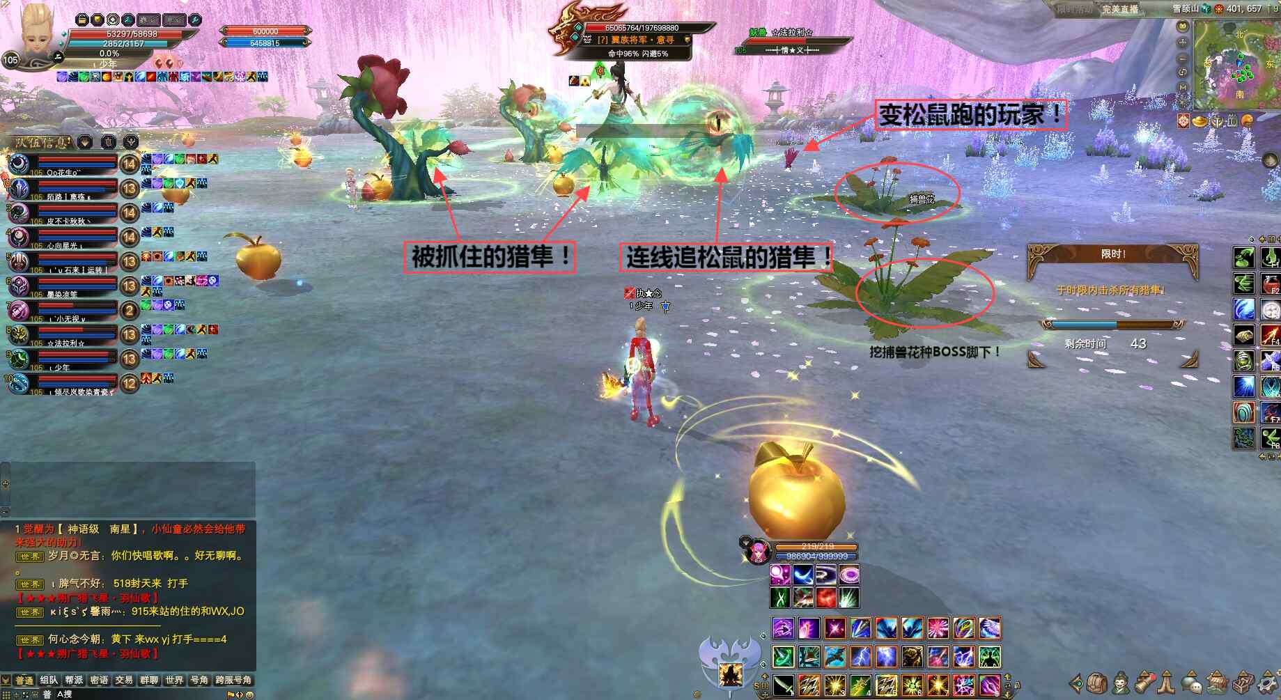 三、队伍配置:常规组队妖兽/抗怪打手、羽灵、魅灵、剑灵、武侠/带鲲鹏的妖精、剩余打手职业,要求血量满状态6万以上且御魔等级520以上、关键打手攻击等级400以上且猎魔等级550以上、剑灵防等350以上,罗刹317套118打手首选、仙童218打手最佳。