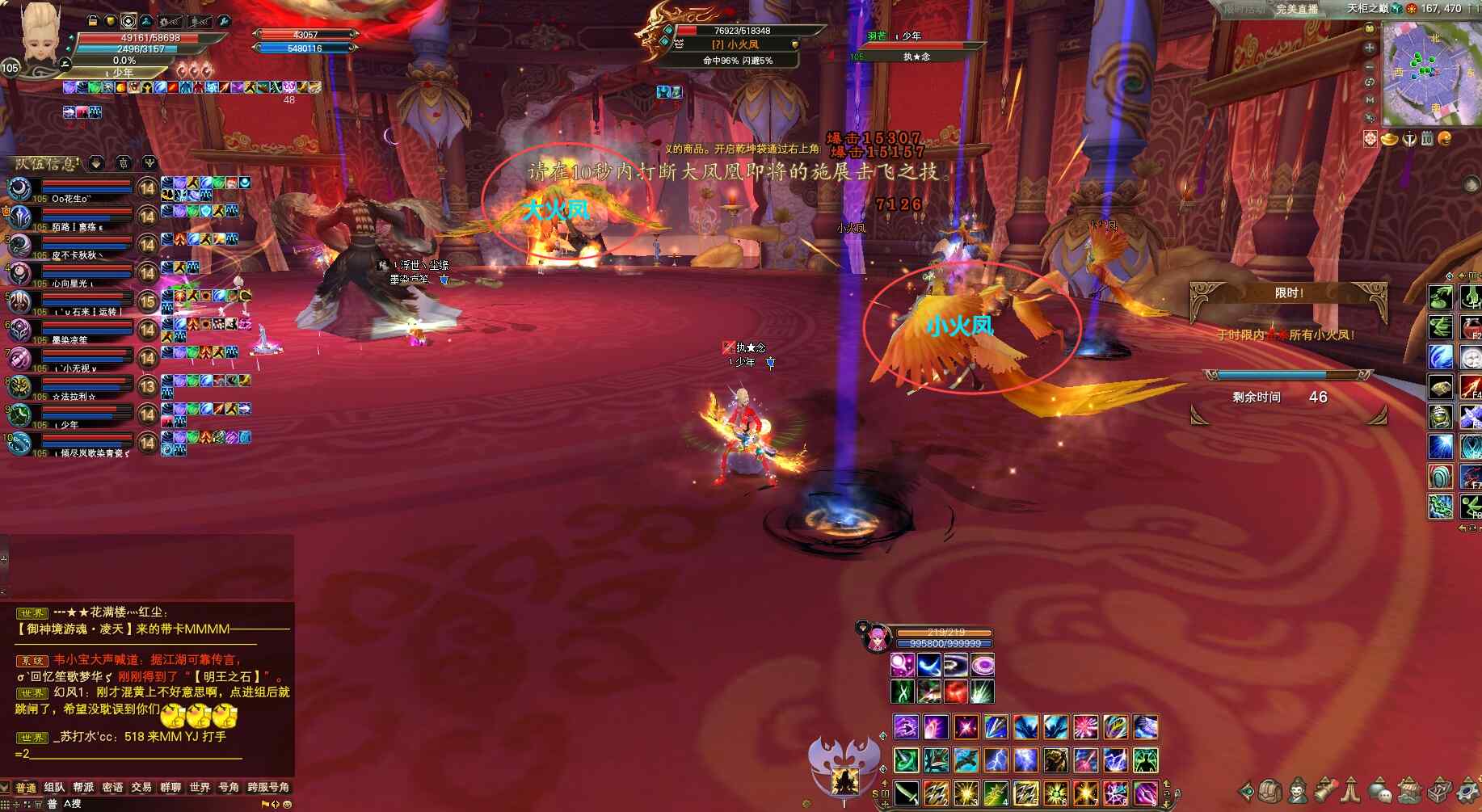 ①第一分身小游戏:限时60秒内击杀小火凤+大凤凰,否则BOSS召唤凤皇之魂全场毁灭打击。