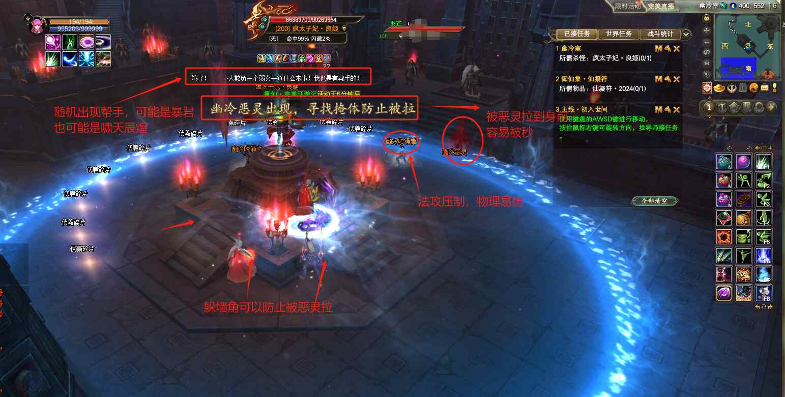 来到幽冷室,等待太子妃下来,以前大家都是剑灵上剑印破斧,打手创世爆元,武侠放龙秒怪,现在很多队伍发现秒不掉了!那我们来说说正常打疯太子妃·良姬,会有哪些机制呢!