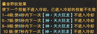 信位技能,神云龙九现;金色符文,可在短时间能使天火狂龙不进入冷却,WX卡双龙必备技能(技能需要空手或拳套状态)。