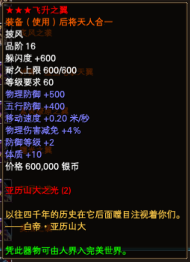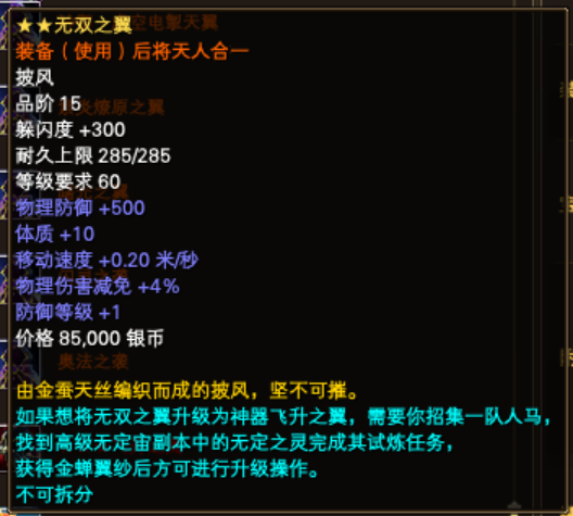 注意:披风有3个类型,请根据自己职业主属性(力量、敏捷、灵力)选择。