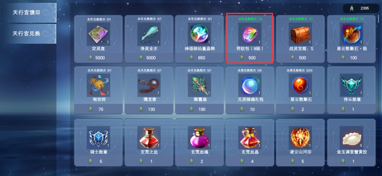 8级符纹获取:消耗500个“天行宫馈印”兑换(限1个)。