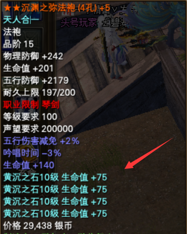 当前阶段建议将角色所有防具都镶嵌上“黄沉之石”,可以极大提升角色的生存能力。