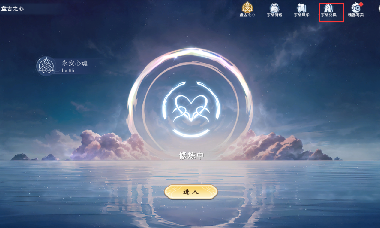 兑换步骤:背包界面点击盘古之心,盘古之心界面选择“东陆兑换”