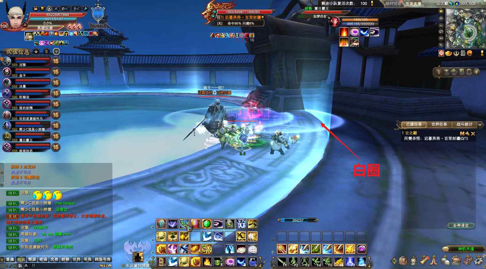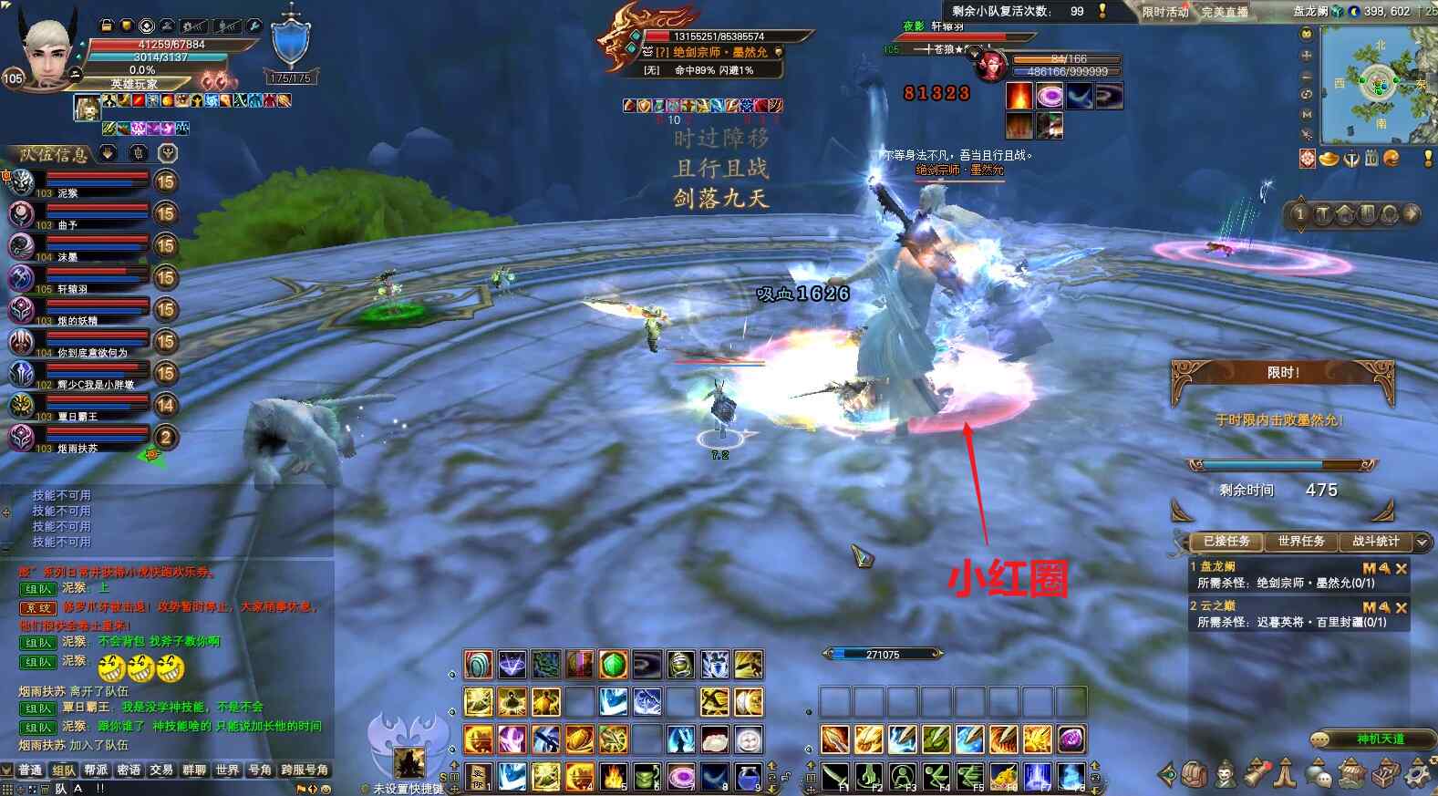 2)头上有剑。如果某个玩家的头上出现剑,需要这个人远离人群比较好,方便其他人继续攻击,如果不离开,会立马出白圈。