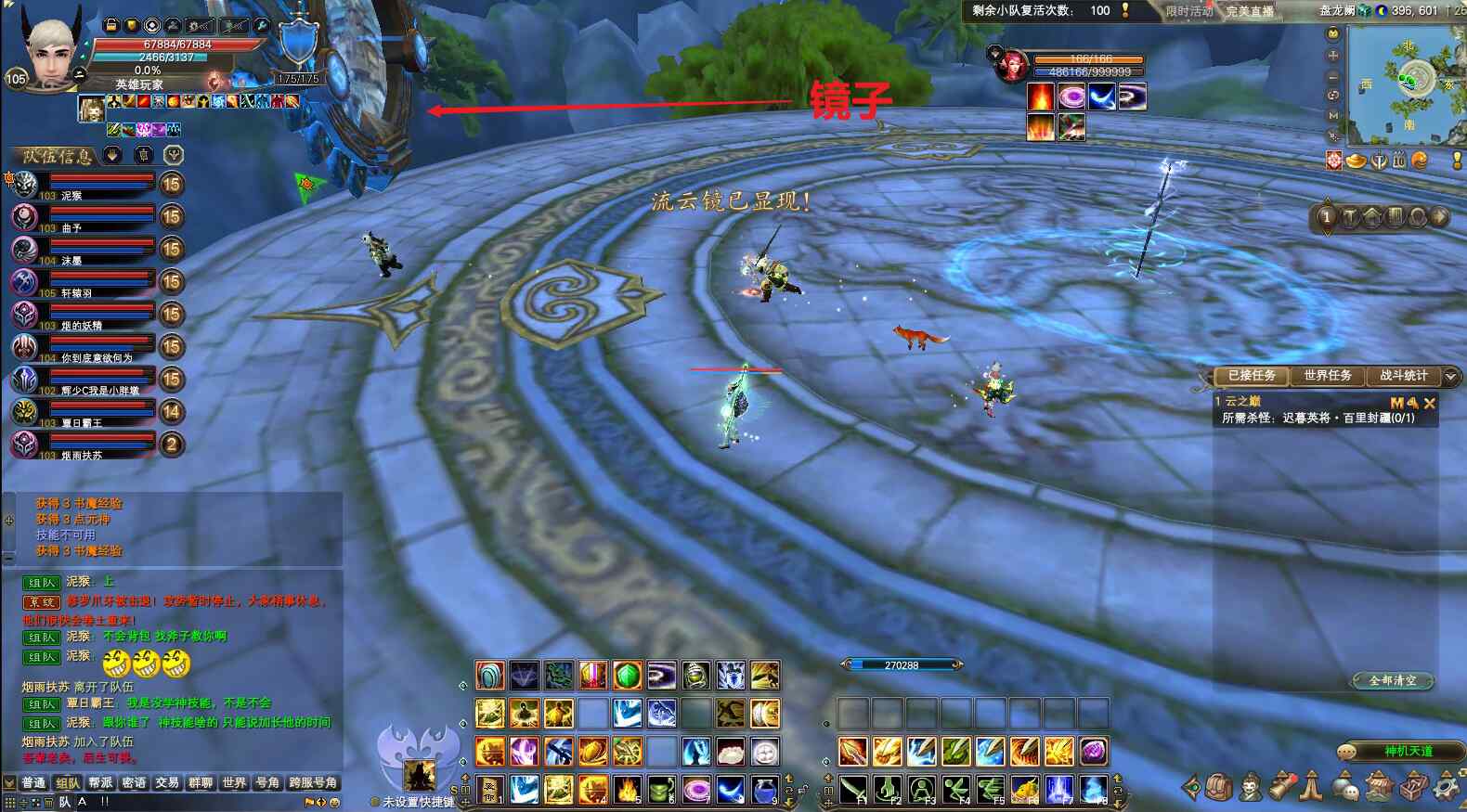 以上2种方式都可以到达副本入口。到达后,再通过NPC 枕流君 进入副本。
