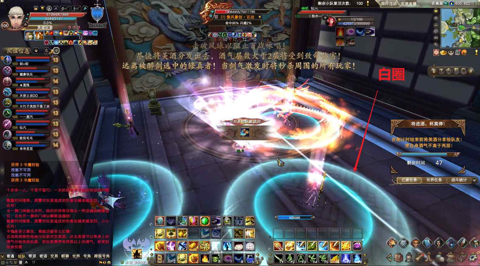 4)酒的状态,在屏幕右边会出现倒计时,倒计时结束时,每层酒40%血量的伤害,可以用无敌药或者精灵的绝对领域技能抗过去;