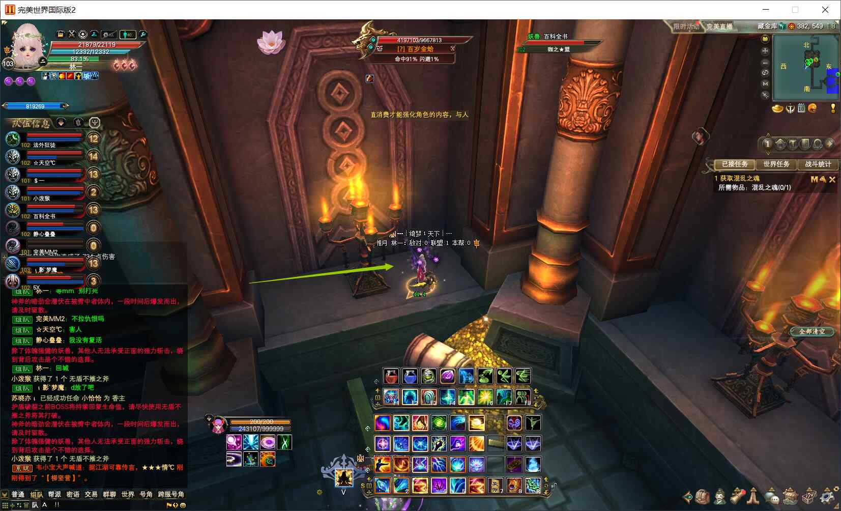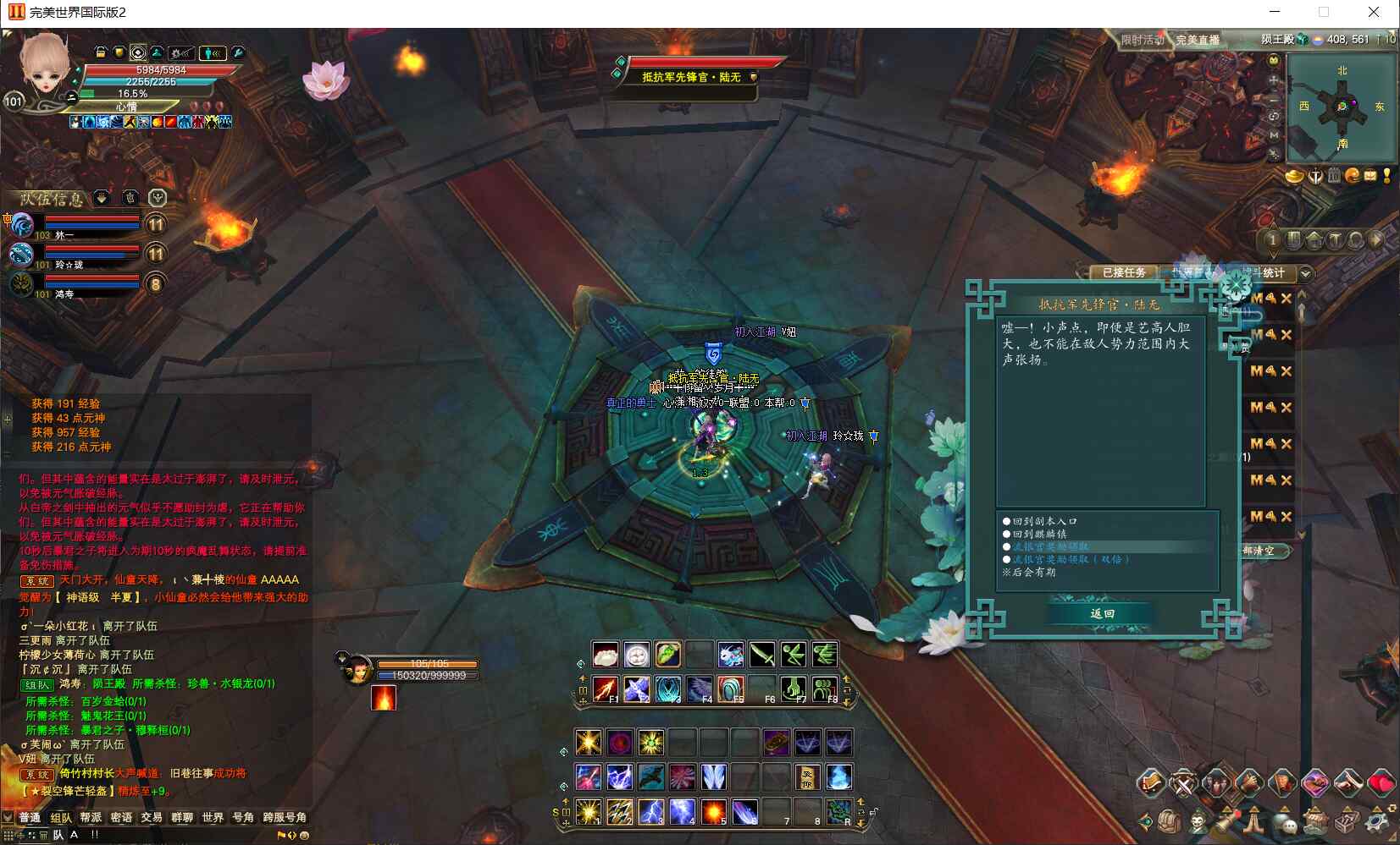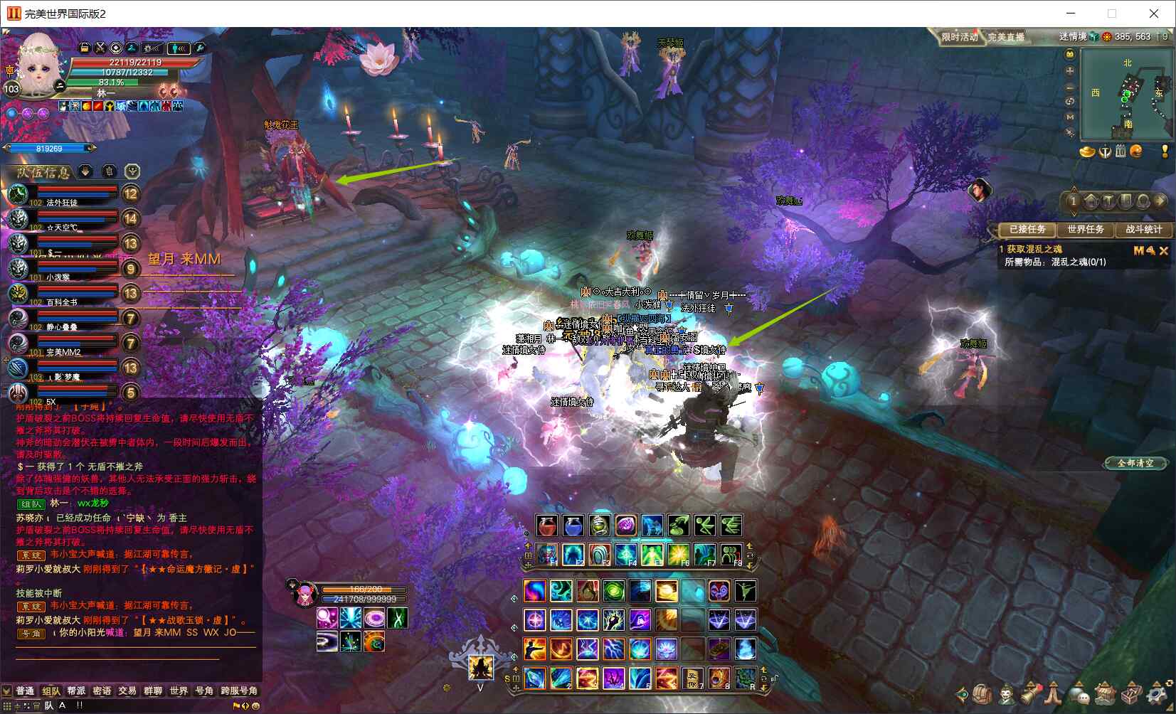 集合状态后,尽量还是由妖兽去吸引仇恨,但是并不强求,其他重甲或者装备好的玩家也可以吸引仇恨。羽灵使用五气朝元继续群加,流银宫除了最后一关外几乎没有开蓝阵的区域。