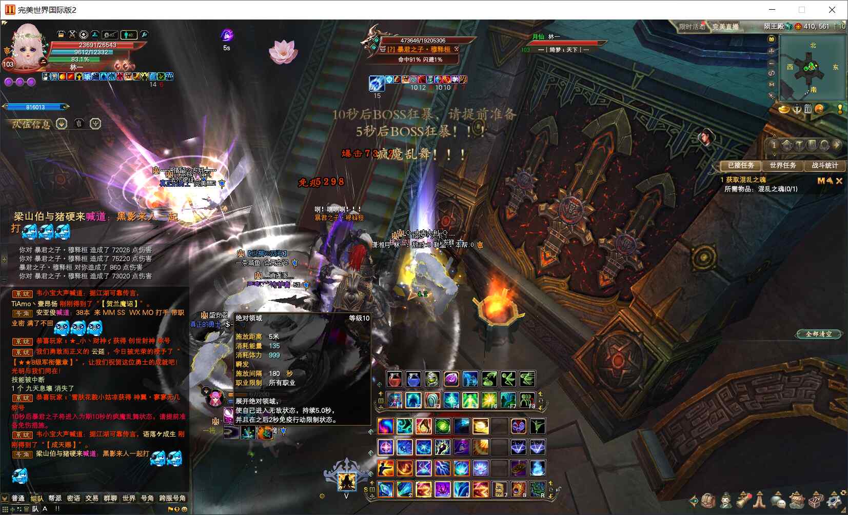 3:穆释桓会在血量较低时,全屏提醒即将进入狂暴状态,届时穆释桓会有高额吸血状态,攻速以及攻击,妖兽抗住,如果没有妖兽,请吸引仇恨的玩家使用元素精灵的“绝对领域”,“高能无敌药剂”等为自己附加无敌状态,不要再最后一步失败哦。