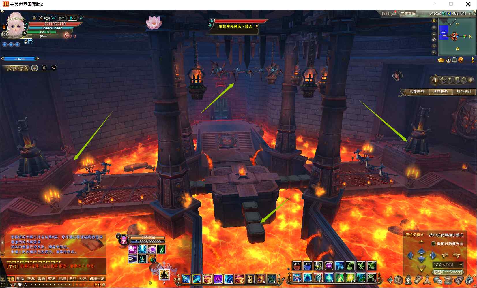 击败五王后,暴君之子·穆释桓终于出现,法系打手站左手边蓝色箭头所示处,妖兽吸引仇恨与其他物理职业站在右手边绿色箭头处(老传统了哈)。其机制为: