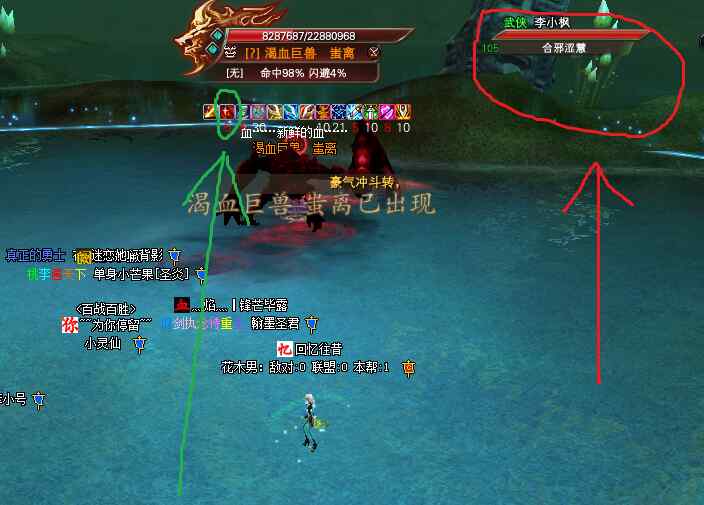 操作如下,直接剑印破斧龙大家爆元打,有残体分水也上。当被诅咒的人有2重状态,看自己左上角头像,