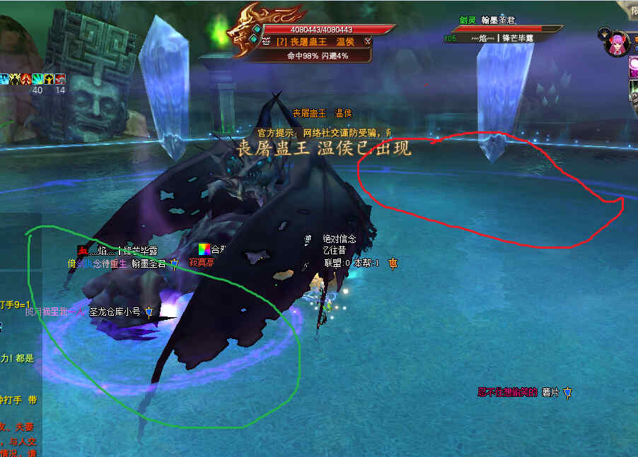 注意事项,BB出来后,谁第一个打它,它就给第一仇恨释放一个小紫色圈,如图片我绿色标记所示。紫圈持续高伤害,需要跑出来,