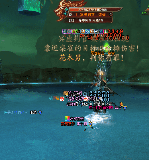 怪出第一个圈后,JO破斧,WX龙,(上关卡了双龙)YJ 残体,CK 分水,其他人爆元秒掉它。