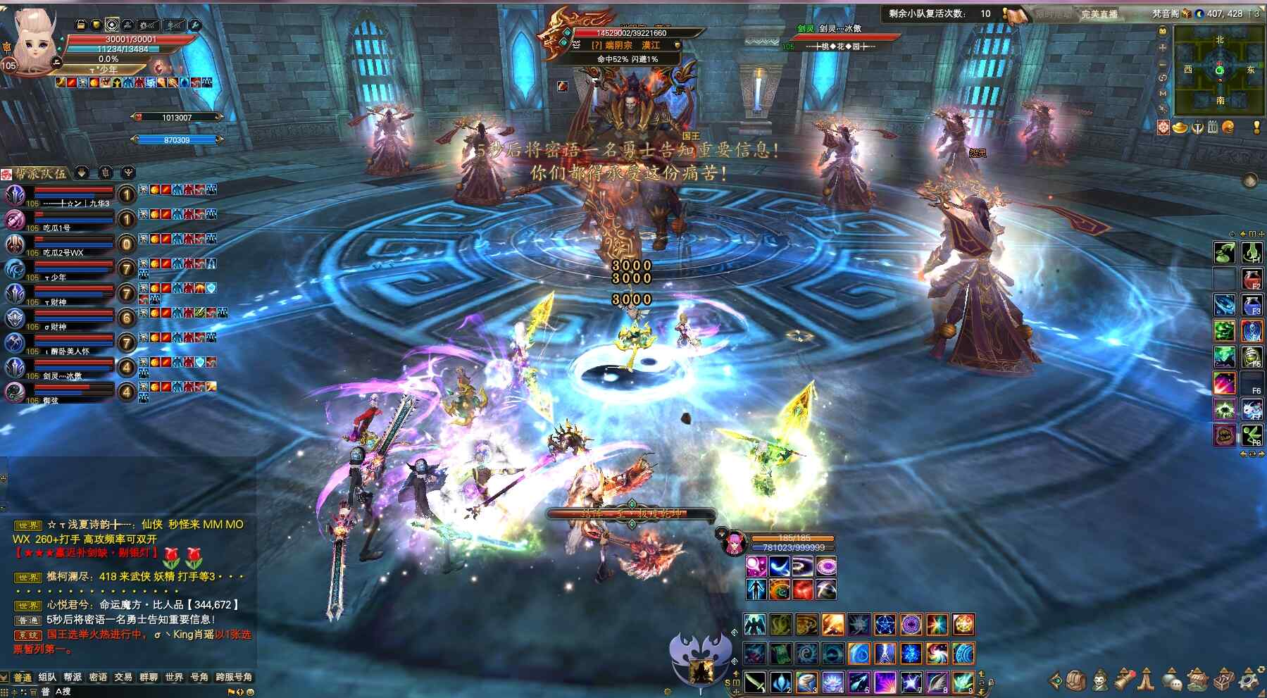 第二轮站位机制举例:下图BOSS喊话“小心法阵陷阱!逆时针东边开始人数递增”,“1”需去东边圈外等几秒钟见大家都进圈后吃10秒无敌再进圈、“22”直接点右上角雷达北边小圆圈站位、“333”直接点右上角雷达西边小圆圈站位、“4444”直接点右上角雷达南边小圆圈站位,按逆时针“东1+北2+西3+南4”规则站位,等提示成功中间集合继续打BOSS。