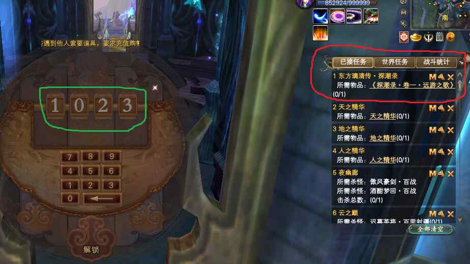 第一步是跟惊涛城长老对话,对话完,要求挖长老背后房子里的箱子。挖箱子需要密码才能打开,