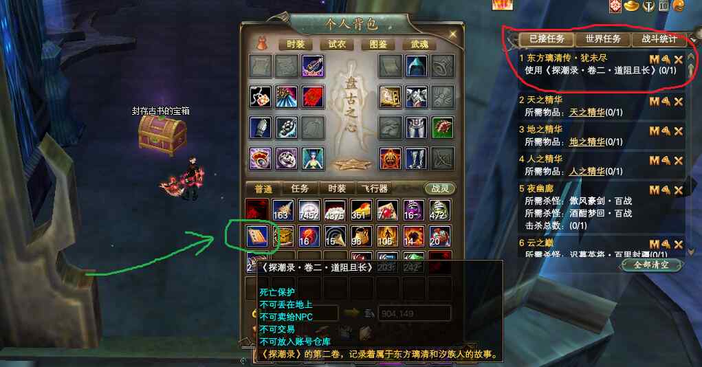 此时需要使用包裹里的任务物品,如下图绿色标记所示。点击使用,就会开始第二阶段任务。