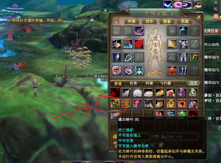 右键点击打开挖取品,有几率给任务品-瑈白叶心。凑够5个任务品,自动跳转继续任务的。
