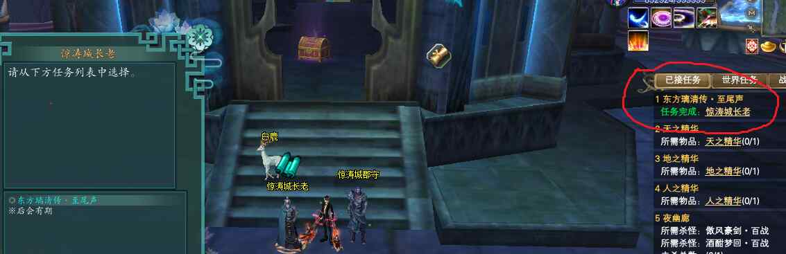 第二阶段做完,还是传回长老处,开始第三阶段,按照任务列表提示做下去即可、