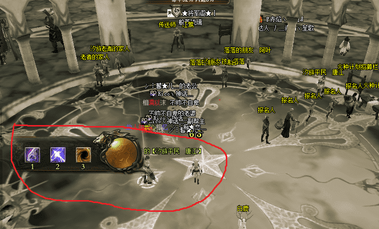 在唐江那里接任务后,就会变身,需要打怪,屏幕出现变身后的技能栏,如下图红圈所示。