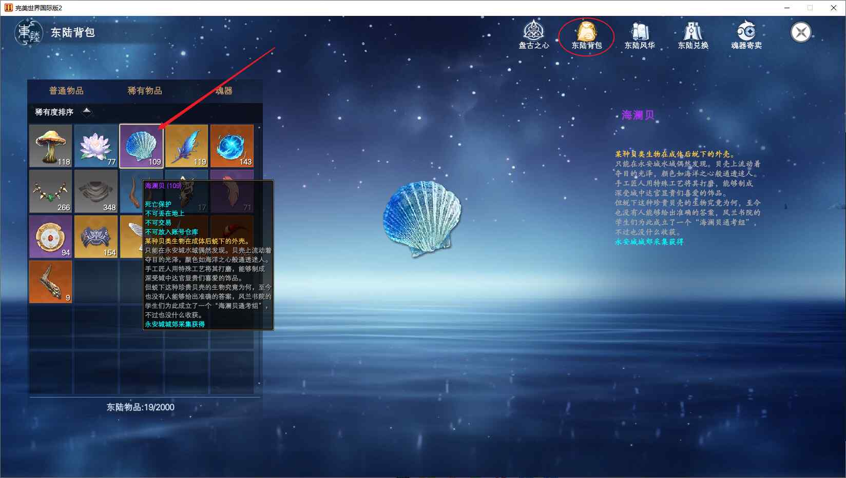 此物品在东陆背包中。东陆背包是独立的,不与个人背包共享存储。
