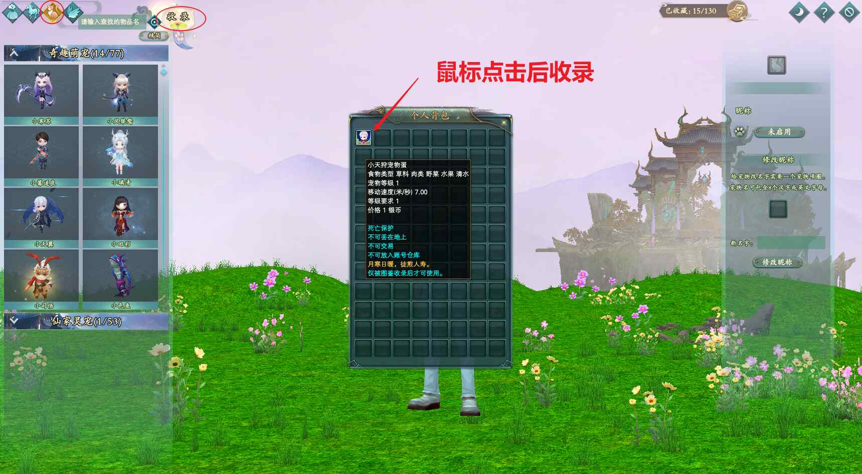 收录宠物蛋的方法