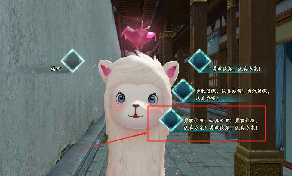 这里需要注意的是,NPC开头的对话,是三遍“勇敢侦探,认真办案”,回答的时候不要点错了哦!和NPC对话完成后,就可以继续去找下一个了!
