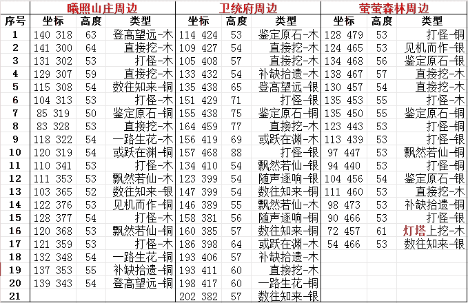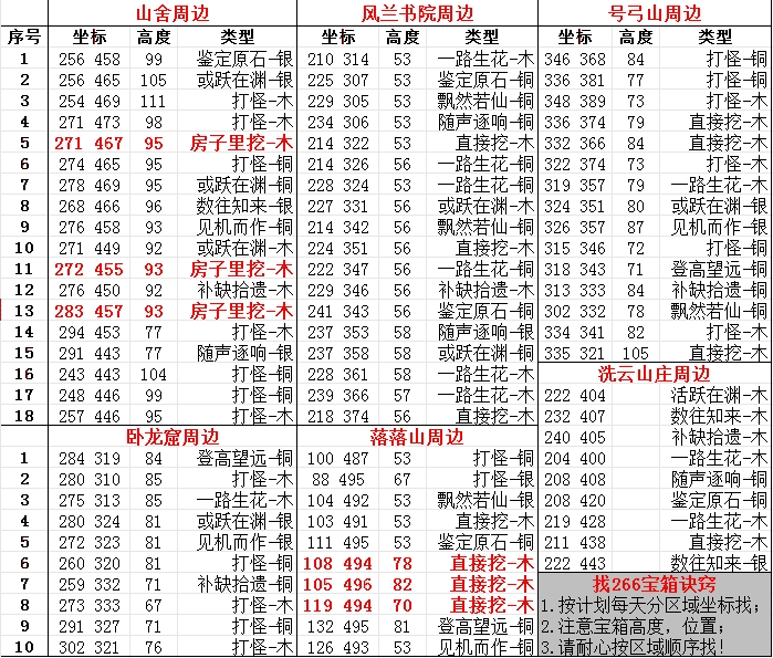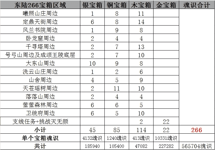 一、东陆永安城探索266宝箱详细坐标按区域如下: